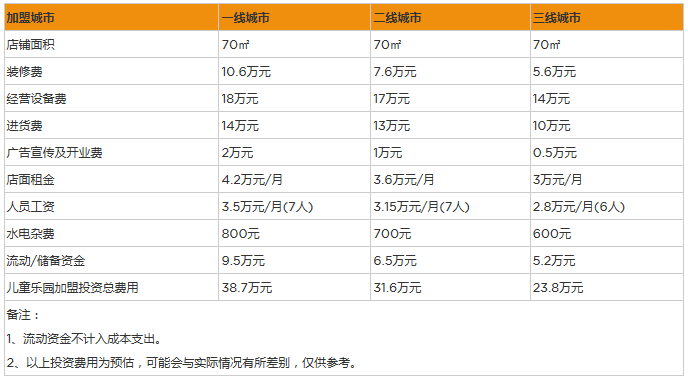 由于地區(qū)經(jīng)濟發(fā)展程度、兒童樂園規(guī)模大小等區(qū)別,不同的兒童樂園投入不同,收益也不同,就以某三線城市的一家70平的兒童樂園為例,分析下兒童樂園利潤。