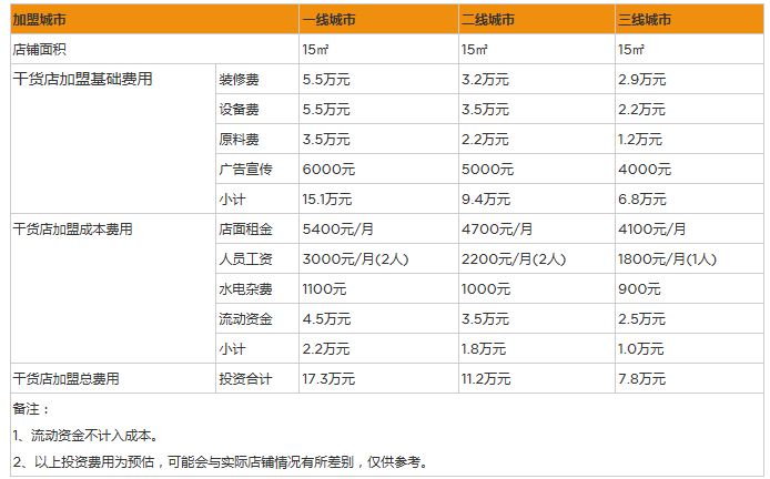 不管是開哪個品牌的干貨店都需要自行承擔開店費用的,畢竟后期盈利完全是個人所得的。