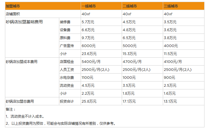 開家砂鍋店投資大概多少錢?40㎡成本預算花費13萬元
