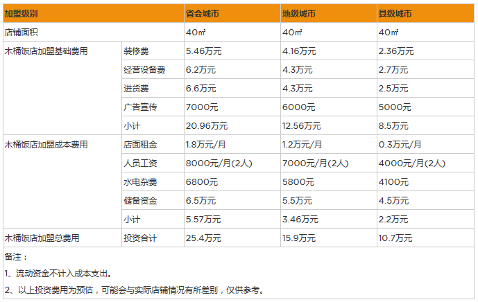 開家木桶飯店投資一般需要多少錢?40㎡店鋪啟動資金10萬
