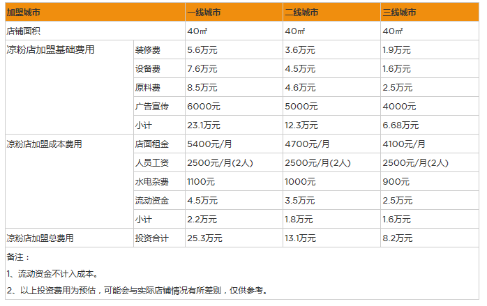 開家涼粉店投資一般需要多少錢?40㎡投資8萬,詳情數(shù)據(jù)分析