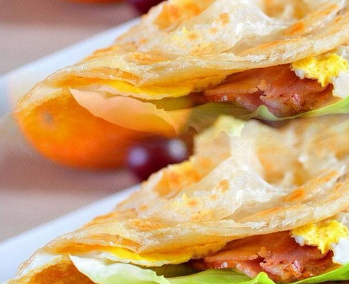 手抓餅是一種很好吃的小吃,特別是剛剛做好的手抓餅外面是焦的,可是里面確是嫩的,咬在嘴里脆脆的,里面還夾雜著肉和蔬菜、雞蛋,味道真是不錯。